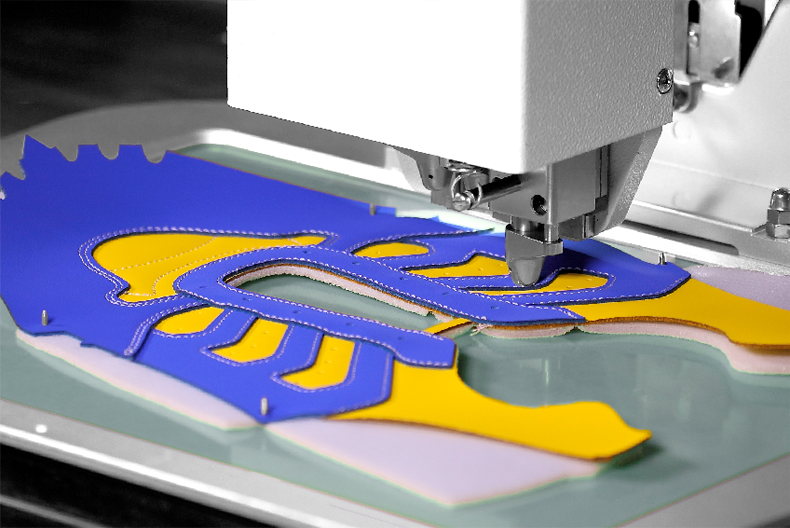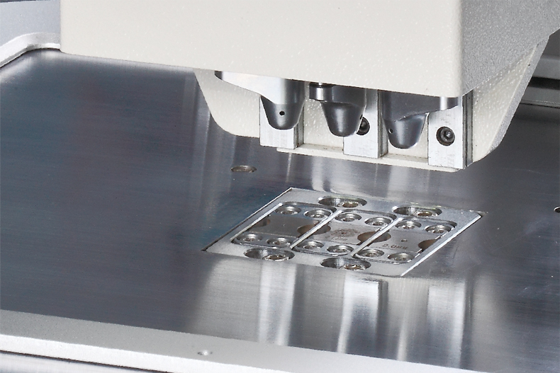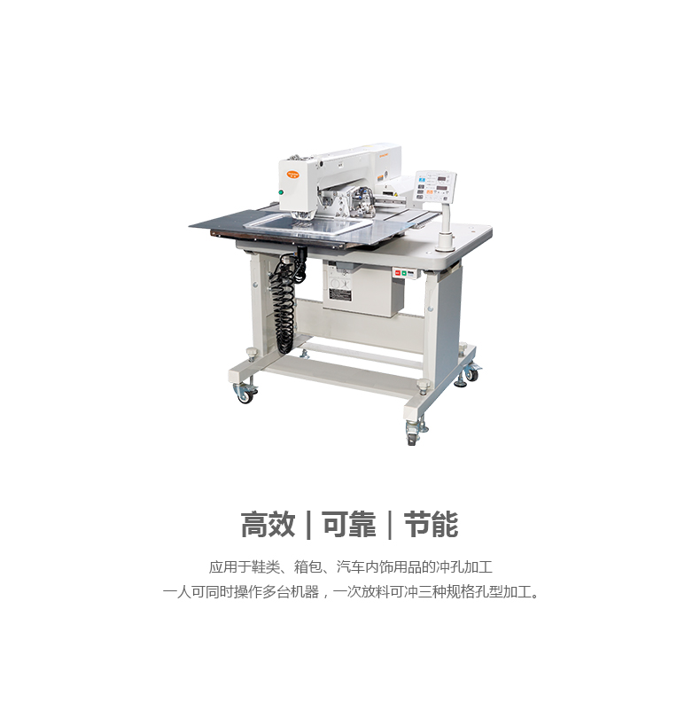 传统冲孔机是重型机械,比较笨重,不方便移动,且不好打板;新型的冲孔机体积小,重量轻,方便移动,可以跟开发室直接对接,共用花样机模板,编程方便。